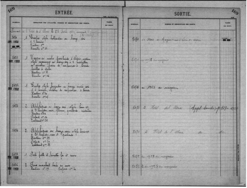 A cette époque, chaque récolement (pointage des objets inscrits à l’inventaire) donne alors lieu à la rédaction d’un nouvel inventaire : les biens non localisés lors du récolement disparaissent alors des radars.