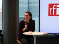 La seconde journée s’est déroulée à France Médias Monde, où la focale a été déplacée vers la liberté d’expression et d’information. L’intervention de Marie-Christine Saragosse a détaillé les missions et défis de France Médias Monde pour continuer à produire une information fiable dans un contexte de désinformation massive et de guerre hybride. La visite de la rédaction et des studios radio et télé ont ensuite donné à voir la complexité et l’exigence du travail des journalistes et techniciens de FFM. Les particularités de ce groupe dans le paysage français, dont la première est son implantation internationale, ont été gaiement abordées lors de la visite.