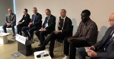 Bruno Le Maire, ministre de l'Economie et des Finances, Franck Riester, ministre de la Culture, et Guillaume de Seynes, président du Comité stratégique de filière...