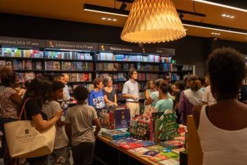À Saint-Pierre, des collégiens découvrent la librairie Autrement dans le cadre de Jeunes en librairie/Fé nèt livr, qui offre à chaque élève un chèque de 30 euros pour constituer sa bibliothèque personnelle. Par l’entrée de la librairie indépendante, le parcours déroule la filière du livre. À quelques pas, la médiathèque Raphaël Barquissau, tête du réseau de lecture publique, pilote Athéna, le plus grand salon du livre de l’océan Indien (35 000 visiteurs), dont la dernière édition a accueilli 162 classes de la maternelle au lycée.
