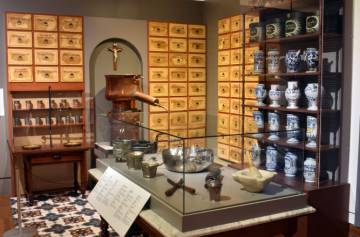 Enfin, ce sont les activités de soin et d’alimentation qui sont développés par les nombreux prêts de l’ancien Hôpital Saint-Laurent de Chalon-sur-Saône : écuelles, gobelets, plats et brocs en étain (classés depuis 1925) ; l’alambic, la balance, des mortiers, ainsi que plusieurs pots à pharmacie (classés depuis 1932).