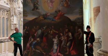 Le tableau de la Transfiguration a pu être raccroché le vendredi 6 octobre 2023 dans la cathédrale de Chartres.