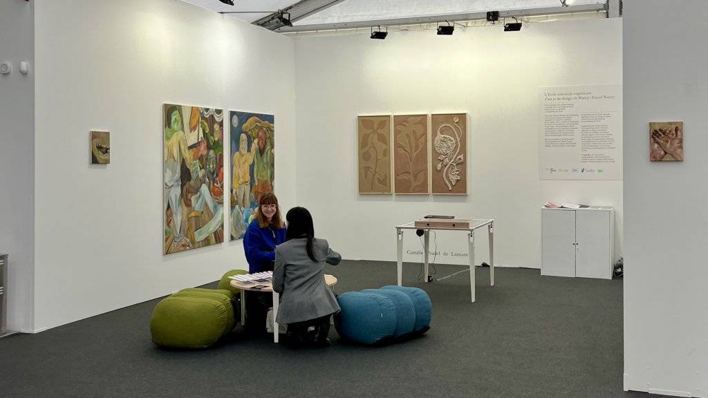 Le stand d’exposition de l’Ensad Nancy a valorisé les œuvres de quatre jeunes diplômés. Sélectionnés à l’issue d’un appel à candidature, Camille Pradel de Lamaze, Délia Préteux, Baptiste Thiebaut Jacquel et Nan Zhang ont eu l’opportunité de se faire connaître et d’échanger avec un public de professionnels et d’amateurs d’art. Ils étaient accompagnés et entourés par l’équipe pédagogique de l’école avec le soutien des partenaires : la Direction régionale des affaires culturelles du Grand Est (ministère de la Culture), l’Institut français et l’Ambassade de France au Luxembourg et l’association Victor Hugo.
