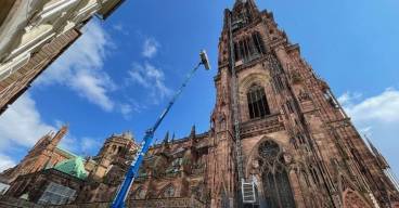 Les travaux préparatoires à la restauration de la grande coupole du chœur de la cathédrale de Strasbourg débutent.