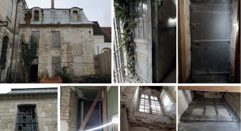 - celles du XVIIIe siècle inchangées. La plupart est altérée voire manquante. Pour ces raisons entre autres, les baies sont alors fermées par : des panneaux de bois, des panneaux translucides, des maçonneries de parpaings. Ces maçonneries masquent souvent les barreaudages défensifs encore en place en partie ou totalement selon les endroits.