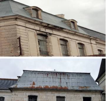 annexe à la cuisine - Etaiement de la charpente et repiquage de la couverture de l’aile sud, réfectoire et cuisine