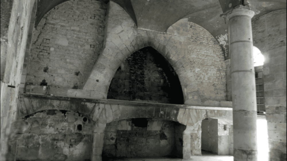 - Etaiement des charpentes et la mise hors d’eau du grand cloître.