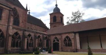 La cathédrale Saint-Dié-des-Vosges en grès rose forme, avec l'église "Notre-Dame-de-Galilée" et le cloître qui relie des deux édifices, un véritable ensemble.