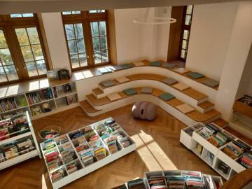 Répartis sur trois niveaux, les espaces sont reliés par un escalier central qui assure une circulation fluide entre l’espace Jeunesse, l’étage dédié aux adolescents et adultes, et l’espace jeux. L’accessibilité du bâtiment a fait l’objet d’un soin particulier : mise en accessibilité PMR complète, installation d’un ascenseur, gratuité de l’inscription et ouverture 22 heures par semaine, du mardi au samedi.