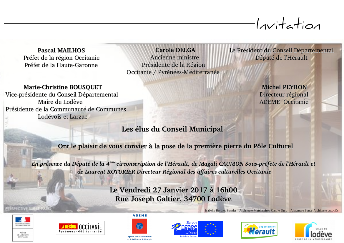 Découvrez en images la pose de la première pierre de Confluence, pôle culturel de Lodève qui s'est déroulée le vendredi 27 janvier 2017.
