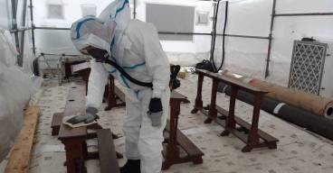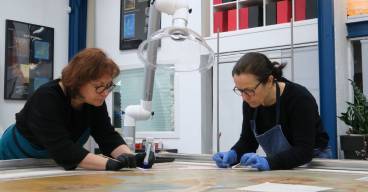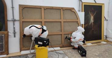Restauration d'un tableau dégradé lors de l'incendie de la cathédrale de Nantes