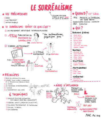 Grâce à des articles synthétiques, accompagnés de fiches de synthèse croquinotées (sketchnotées), découvrez les différents mouvements artistiques : leurs histoires, caractéristiques, techniques, artistes emblématiques et œuvres majeures. L'art baroque, le romantisme, l'orientalisme, le réalisme, l'impressionnisme, le pointillisme, le fauvisme, le cubisme, le surréalisme, l'art déco, le nouveau réalisme, etc. , n'auront plus de secret pour vous !